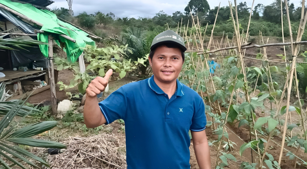 “I have been attending Solidaridad and Regenagri project sessions since 2024, and have learned how to utilize the empty spaces around the young oil palm plants to grow other crops,” says Yani. He began by cultivating tomatoes around the palm trees. “Because my oil palm trees are not tall, the tomato plants I’ve put in grow well and get enough sunlight,” he explains.
